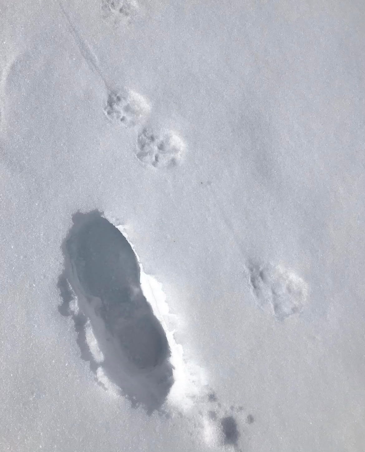 One learns much about an animal, observing its track. Even if that observing only leaves questions posed—did it pause just here? Did it see prey and dart off, or was it the sound of my opening front door? No, the route meanders, not in a hurry.